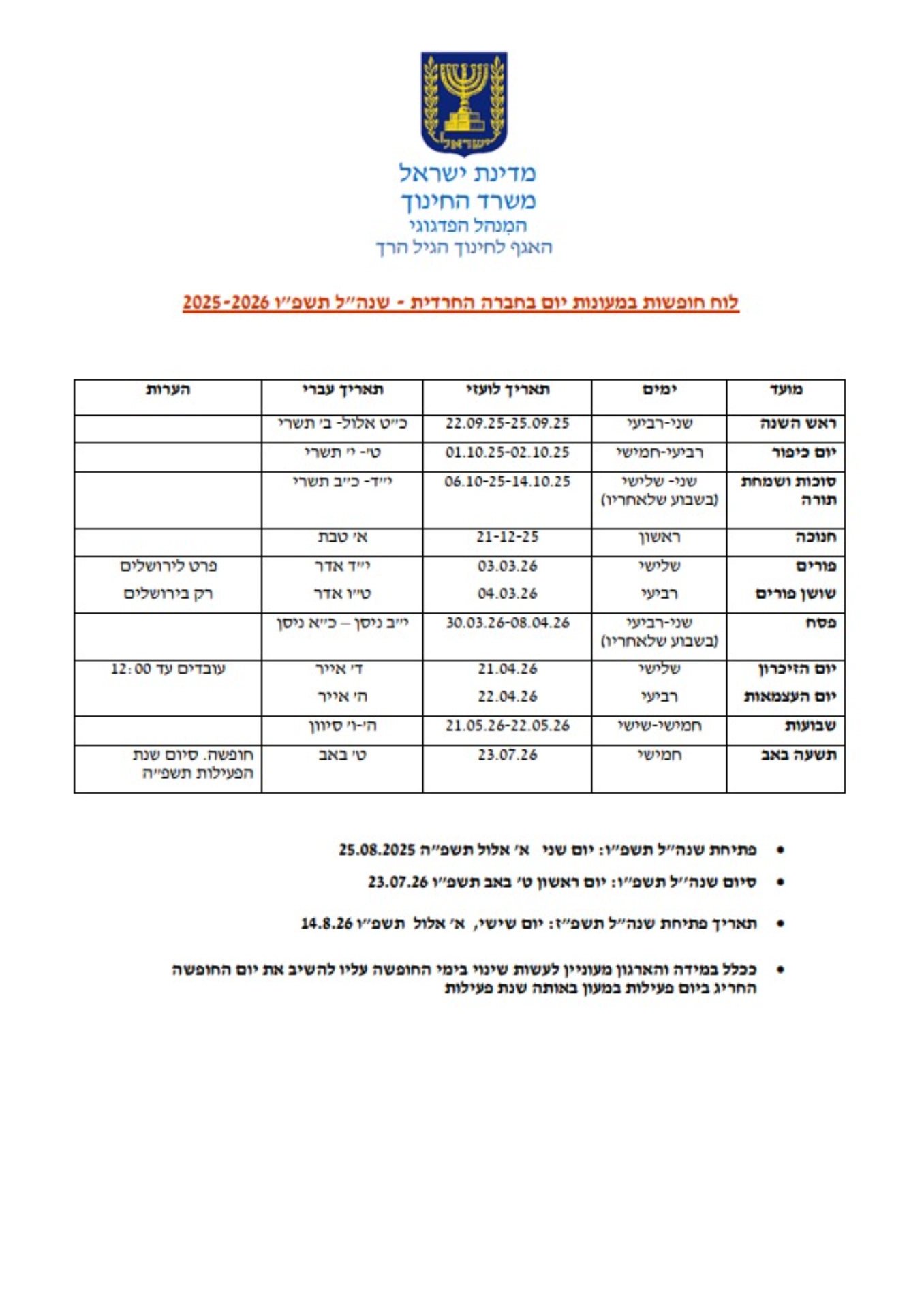 אנו מקיימים את ימי פעילות הכן לפי לוח החופשות של משרד החינוך